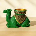 Camel-Shaped Decorative Holder – A beautifully crafted camel figurine with an ornate golden bowl on its back, available in green-and-gold or antique gold finishes. Perfect for incense, tealights, or as a unique cultural décor piece.
